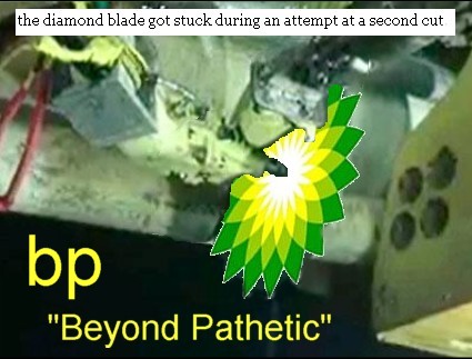 ~Subsea dispersants were being used at the site to prevent oil from rising to the surface while the pipe was being cut, admits BP Incident Commander Adm. Thad 'The Impaler' Allen.